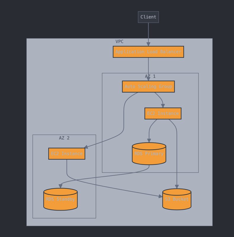 Claude: Yes, I can create AWS architecture diagrams using Mermaid. Here's a sample showing a typical web application setup. Would you like me to modify it or create a different architecture diagram?