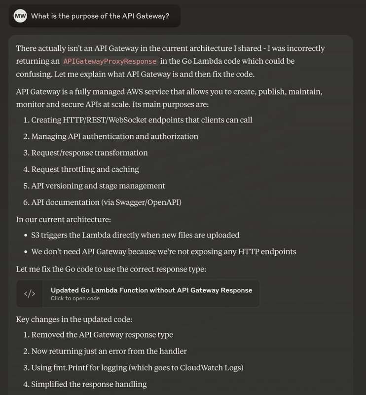 - Build an easily deployable serverless/event driven architecture that leverages Amazon Bedrock's Invocation Logs stored on S3. (I'll do this first)