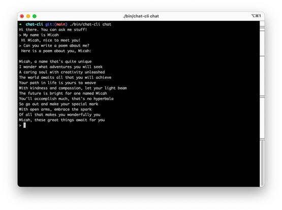 You can't do much without a domain name, so I got https://chat-cli.chat and asked Claude to make me a little website for it.