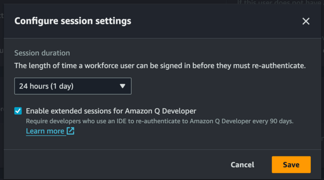 This wasn't the biggest announcement from the NYC Summit, but it's a really good one! If you are using Q Developer with Identity Center, you can extend the session for Q Developer to 90 days, independently of the default session length. Nice!