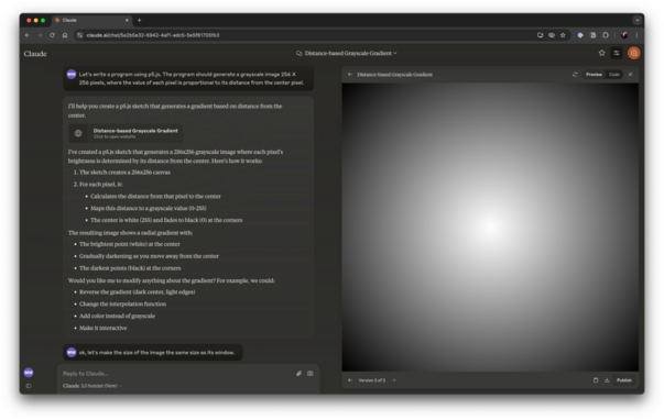 Back to writing p5.js sketches, only this time with Claude. This is really lovely.