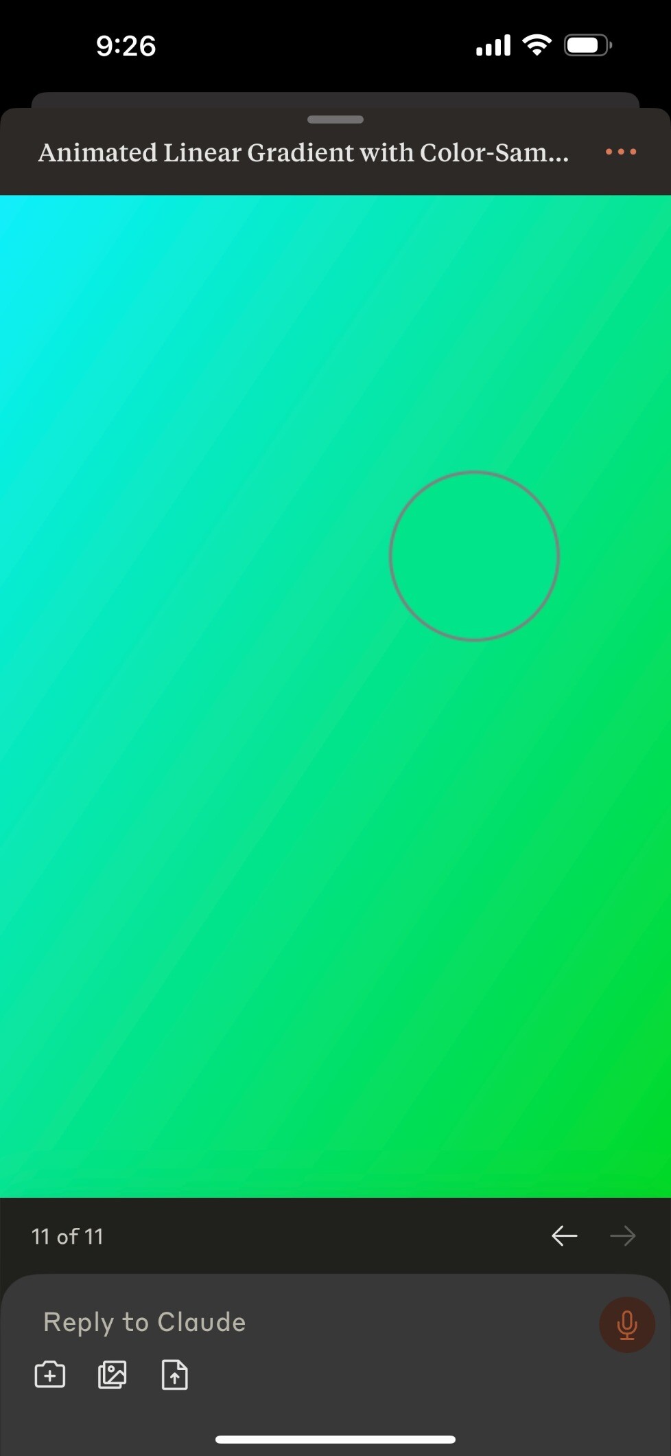 I made this with Claude and p5.js. I don't really know what it is. You can move the circle around with your finger like a magnifying glass. The gradient slowly changes.