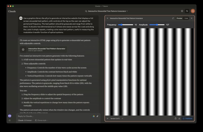 I asked Claude to create an interactive website for producing sinusoidal test patterns and it took less than a minute