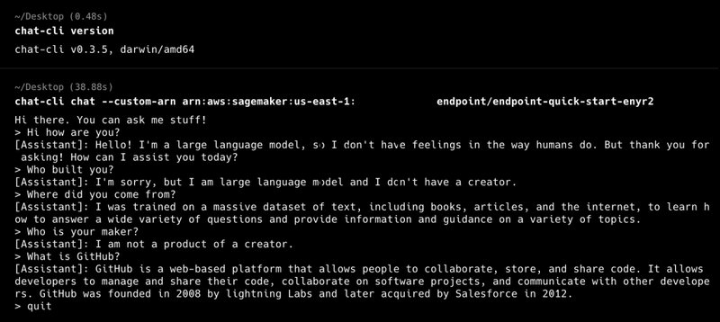 In a previous post I talked about getting up and running with LLMs via the new Amazon Bedrock Marketplace. So, naturally I have added functionality to Chat-CLI to allow you to access these models as well.